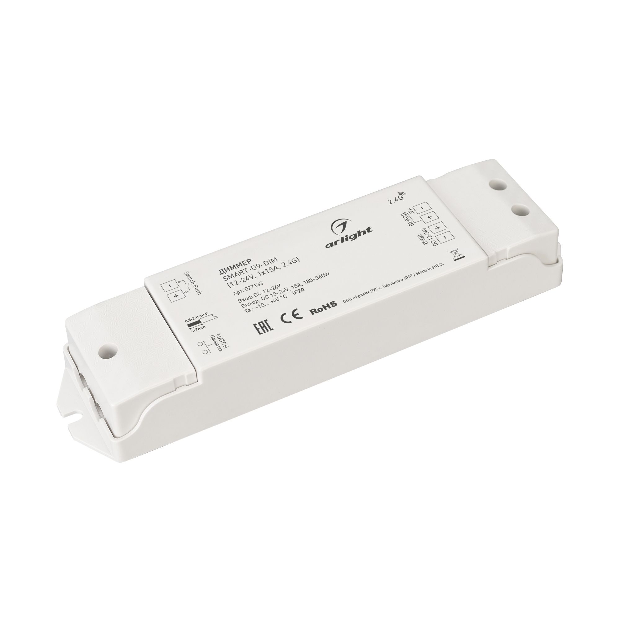 Диммер SMART-D9-DIM (12-24V, 1x15A, 2.4G) (Arlight, IP20 Пластик, 5 лет)