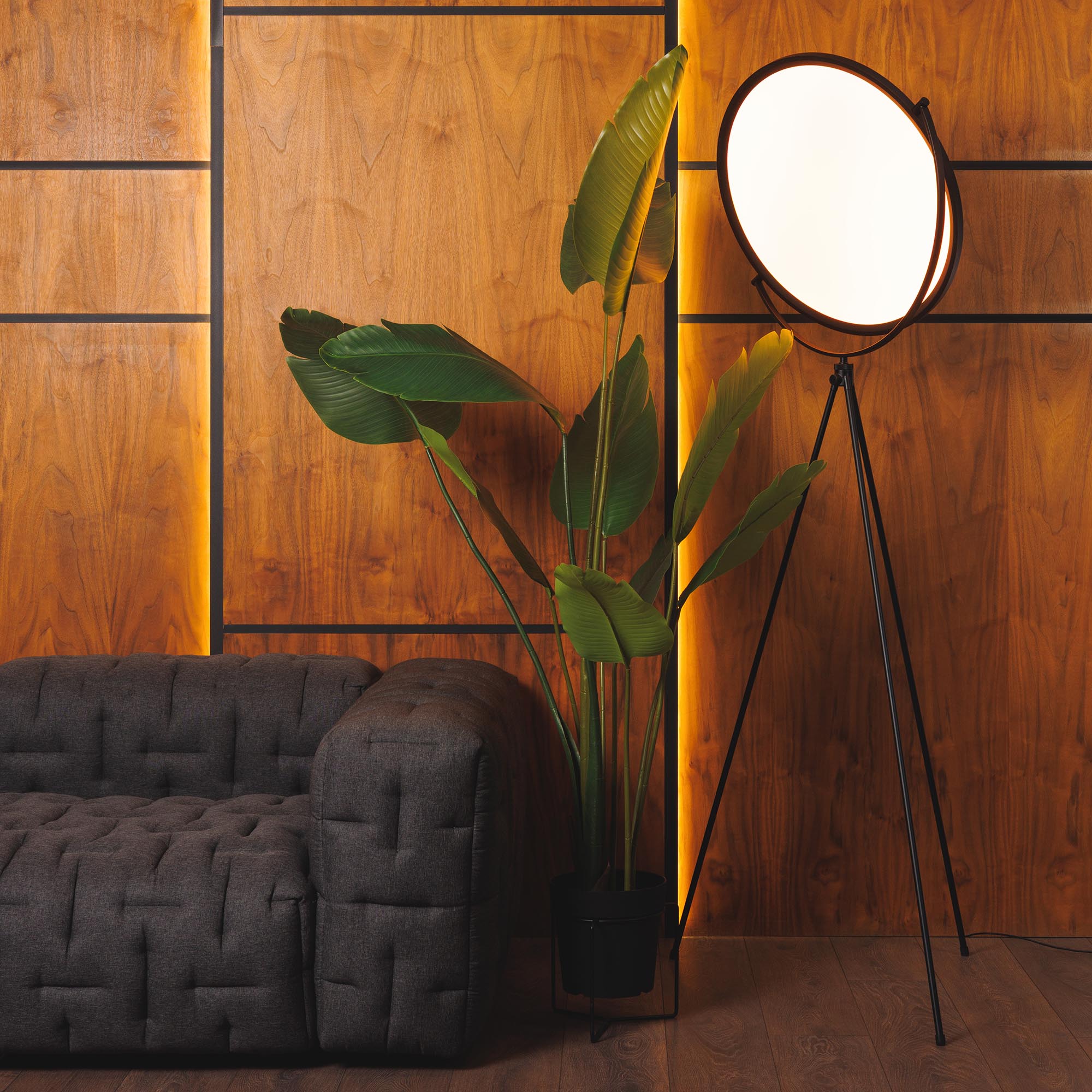 Декоративный напольный светильник LUNAR-FLOOR мощностью 35 Вт с углом излучения 120 градусов используется в качестве стильного элемента интерьера, а также для местного освещения в жилых или коммерческих помещениях. Высокий индекс цветопередачи >CRI90 и световой поток от 72Лм до 1523Лм обеспечивают качественное направленное освещение. Световой поток и цветовую температуру можно регулировать с помощью сенсорного диммера-кнопки, расположенной на штоке. Поворотный модуль в форме луны позволяет легко менять направление света. Низкий уровень пульсации создает равномерное свечение без мерцаний. Степень защиты корпуса на уровне IP20 позволяет применять светильник внутри помещений, где отсутствует контакт с водой. За счет сетевого адаптера, входящего в комплект, светильник быстро подключается к сети 230В.