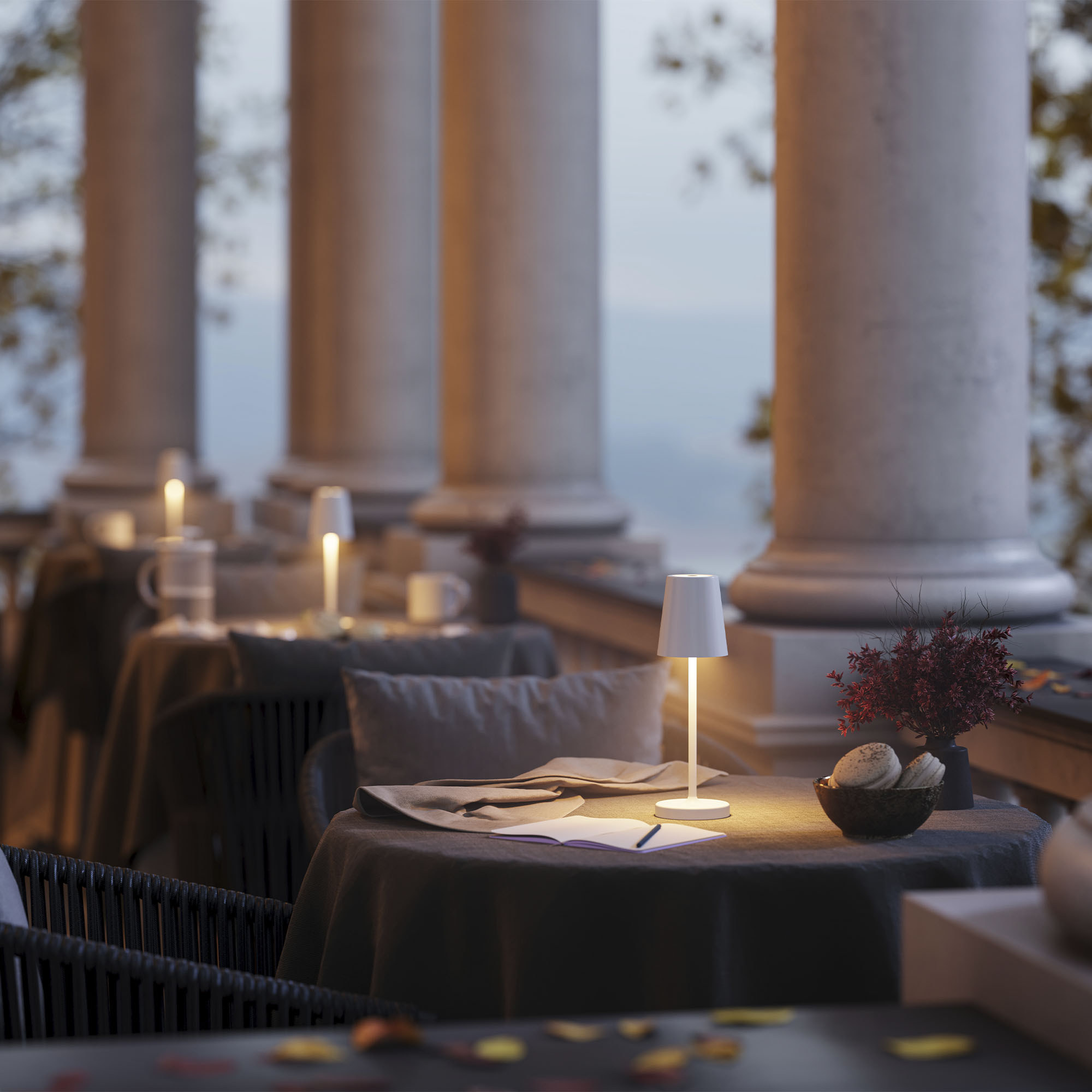 Настольный светодиодный светильник DAISY со встроенным аккумулятором 1.5 Вт. Светильник с регулируемым цветом свечения (2200-2700-3000 К) и световым потоком 110-130 лм станет отличным решением для локальной подсветки. Благодаря степени защиты IP54 светильник можно использовать как в помещениях, так и под открытым небом. Встроенная Li-ion аккумуляторная батарея емкостью 1500 мАч способна обеспечить до 90 часов автономной работы светильника. Последовательное нажатие сенсорной кнопки позволяет включить/выключить светильник и выставить нужный уровень яркости и цвета свечения. Зарядка осуществляется через герметичный USB-порт. Зарядный кабель входит в стандартный комплект поставки.