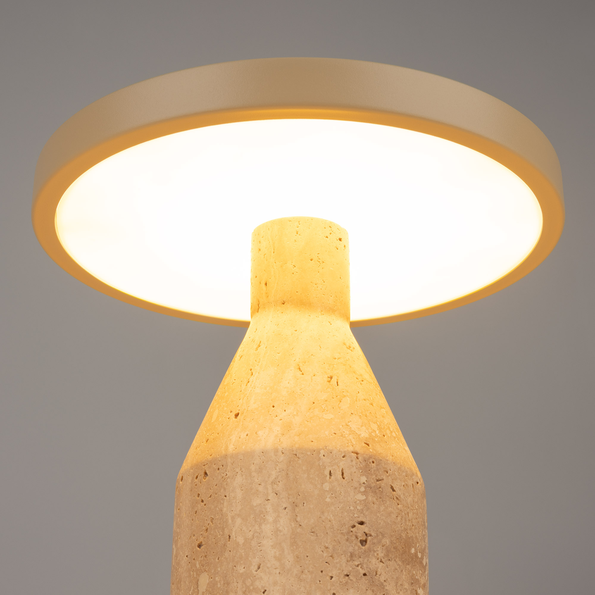 Настольный светильник CROOD мощностью 7 Вт, с изменяемой цветовой температурой 2700/3200/4000K предназначен для местного декоративного освещения в жилых или коммерческих помещениях. Светильник с основанием из травертина оригинально дополнит интерьеры кухни-гостиной или зала кафе, ресторанов. Индекс CRI>94 отвечает за отличное восприятие и передачу цветовых оттенков. Низкая пульсация обеспечивает комфортное освещение без мерцания. Сенсорная кнопка на плафоне позволяет настроить желаемую яркость и цветовую температуру. Пылевлагозащита на уровне IP20 позволяет применять модель внутри помещений, где нет контакта с водой или другими жидкостями. За счет сетевого адаптера, входящего в комплект, светильник быстро подключается к сети 230В.