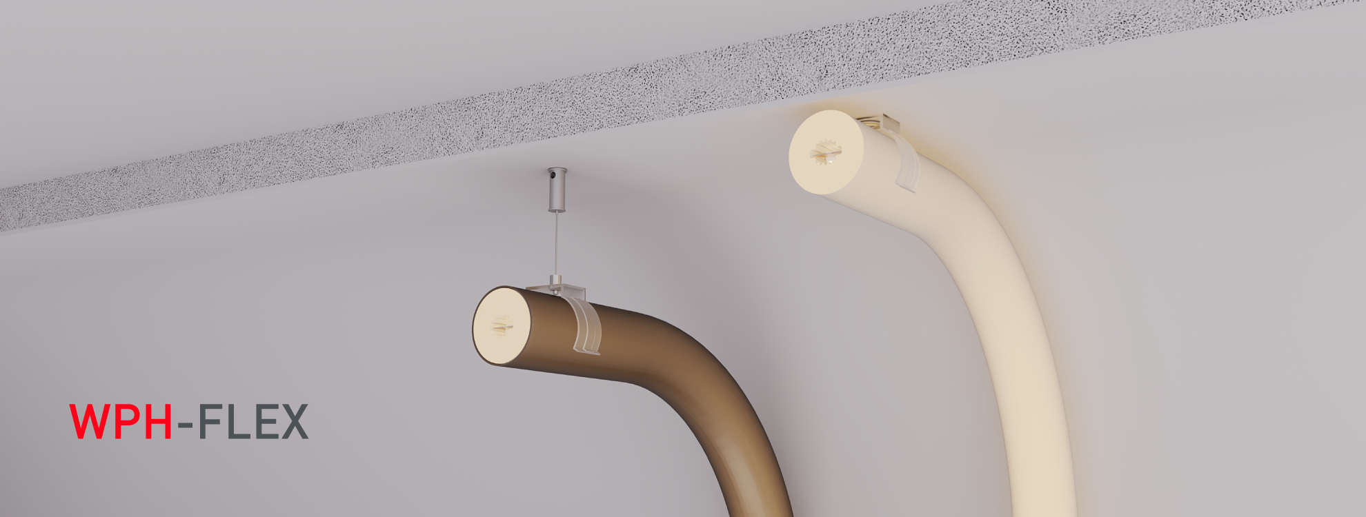 Все профили WPH FLEX можно зафиксировать на поверхности накладным способом с помощью держателей; для ряда моделей также предусмотрены аксессуары для подвесного монтажа.
