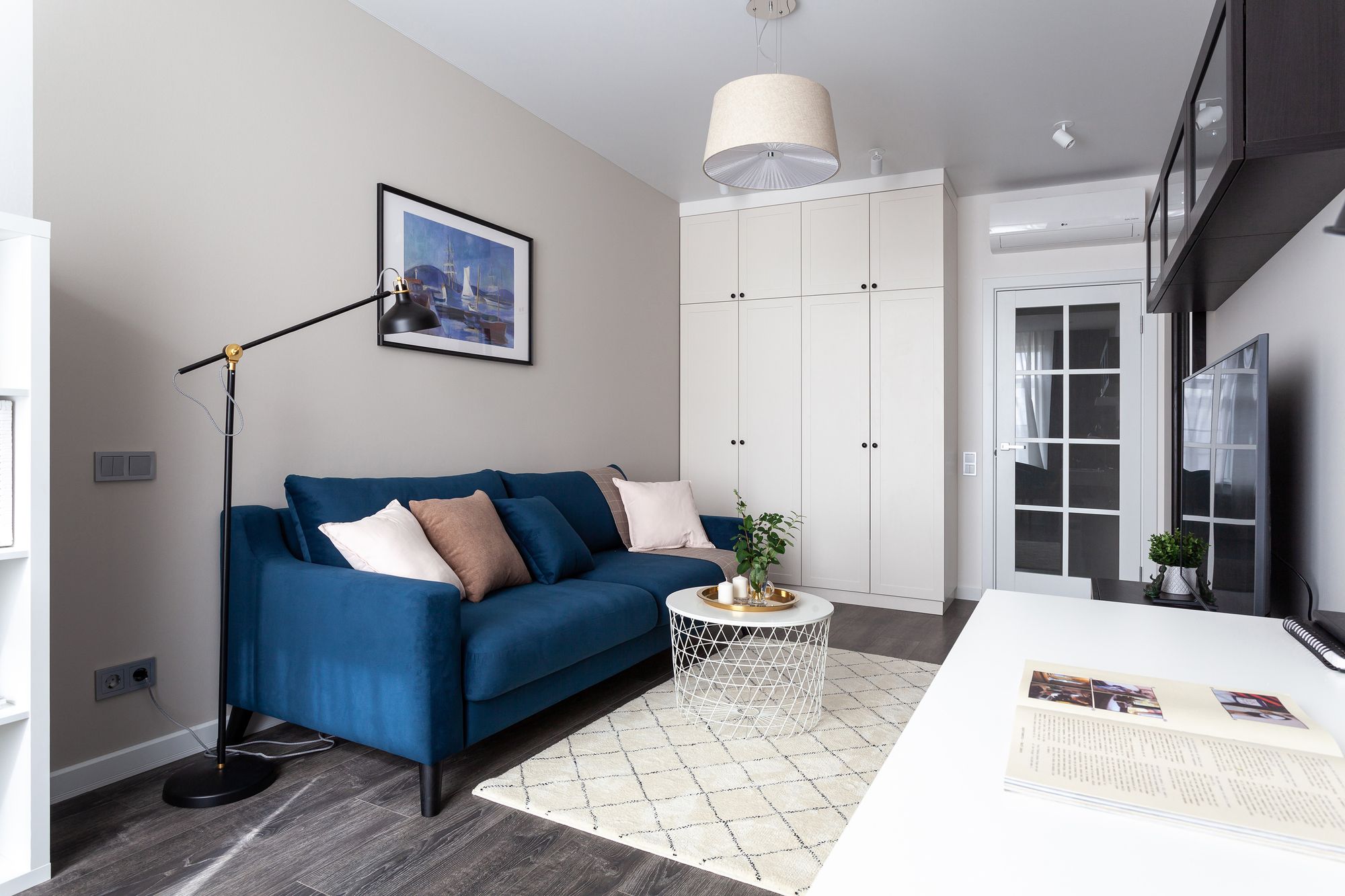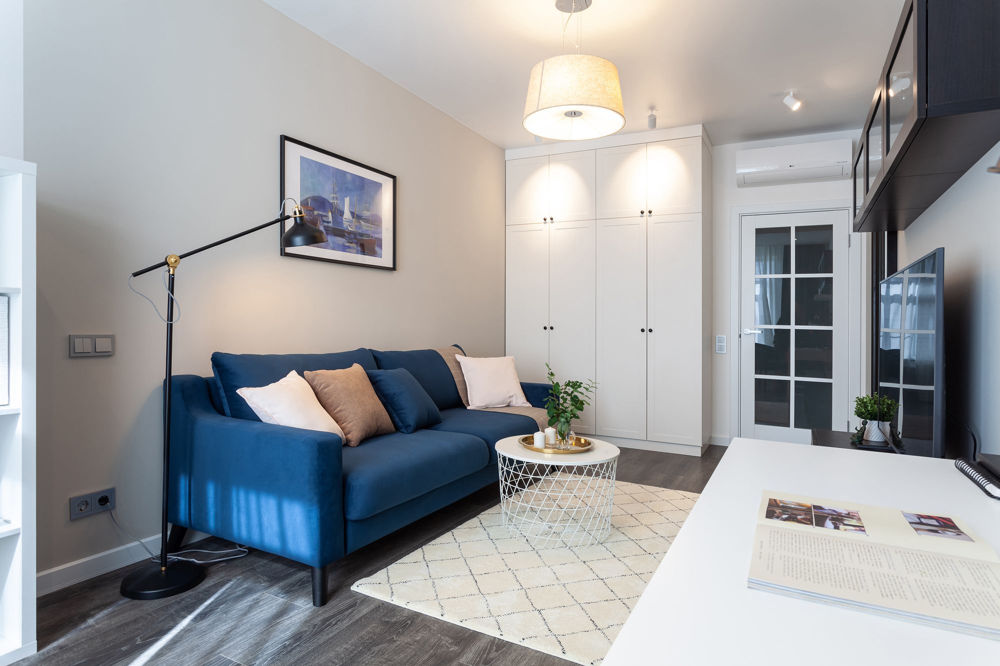 Две одинаковые по планировке квартиры, в которых применили разные цветовые решения и одинаковое освещение. Создание приятной и комфортной световой атмосферы доверили двум типам поворотных светильников. Встраиваемые светильники с узким углом излучения помогают создать акцентное освещение, направить свет на детали интерьера и выделить определенные зоны в квартире. Белый алюминиевый корпус светильников выполнен в современном лаконичном стиле и гармонично вписываются в интерьер. В каждой квартире одинаковые светильники с приятным теплым свечением и разной функциональностью: для декоративной подсветки или основного освещения.