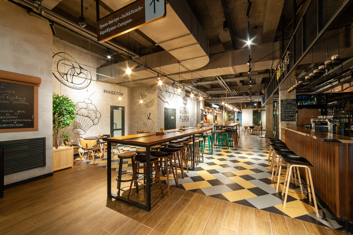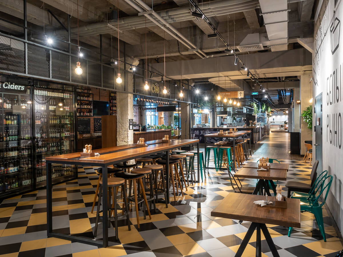 Концепция «Белый рынок» подразумевает объединение на одном пространстве общественных заведений различных форматов: торговых, гастрономических и культурных.