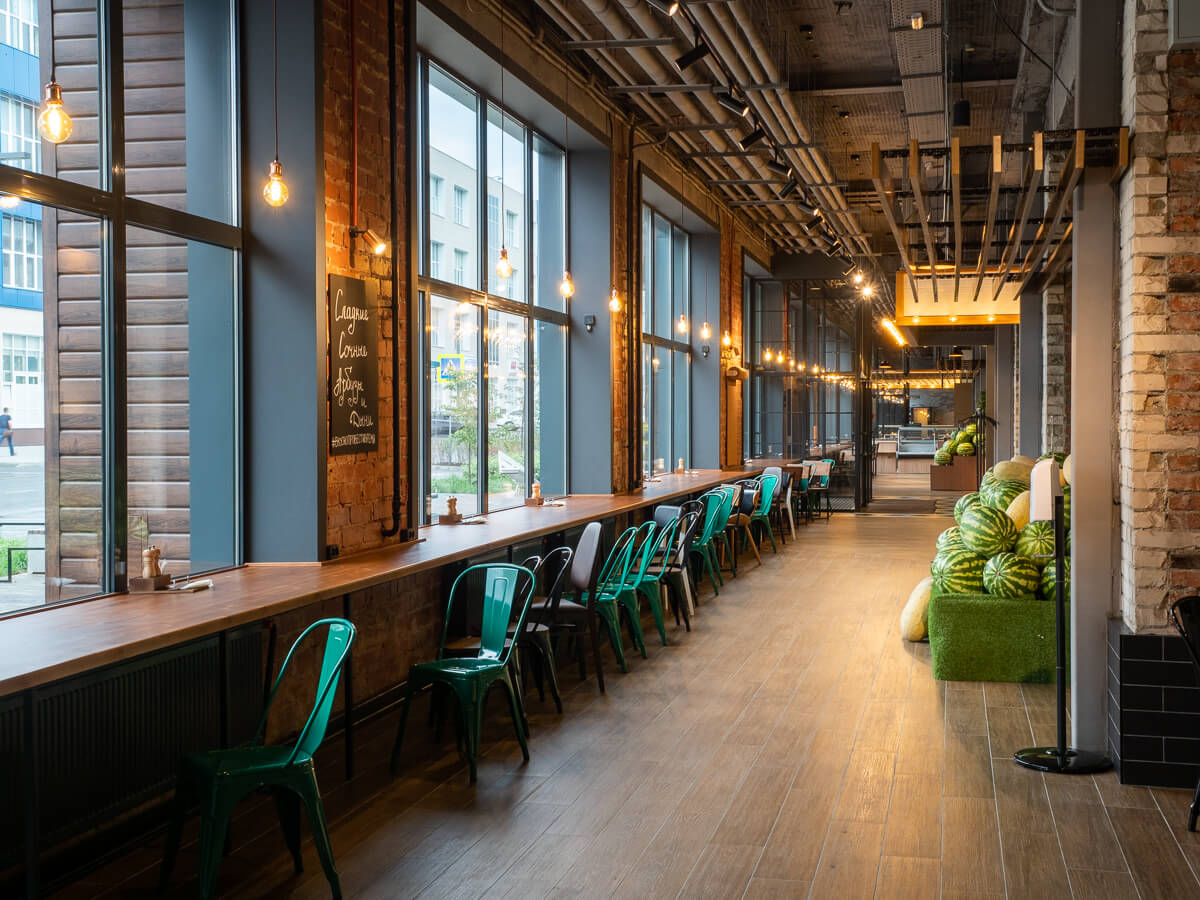 В центре пространства расположился фермерский рынок, для подсветки которого использовалось 220 трековых светильников с высоким индексом цветопередачи CRI90 и регулируемыми световыми модулями.