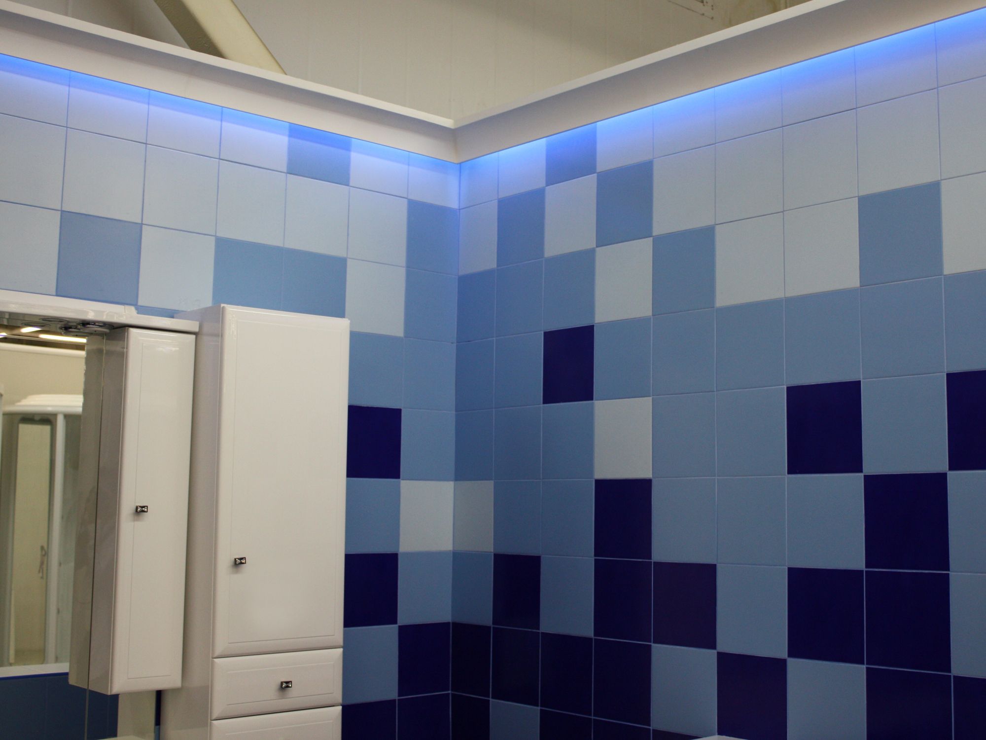 В проекте реализована светодиодная подсветка демонстрационных стендов в магазине сантехники и товаров для ванных комнат.